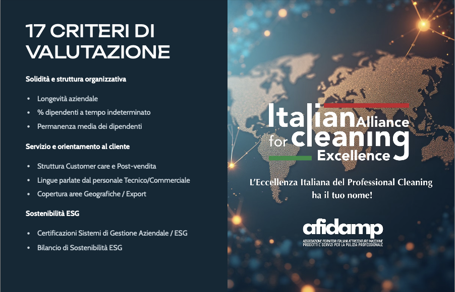 AFIDAMP lancia Italian Alliance for Cleaning Excellence, il marchio che certifica e promuove l’eccellenza italiana del Cleaning professionale nel mondo