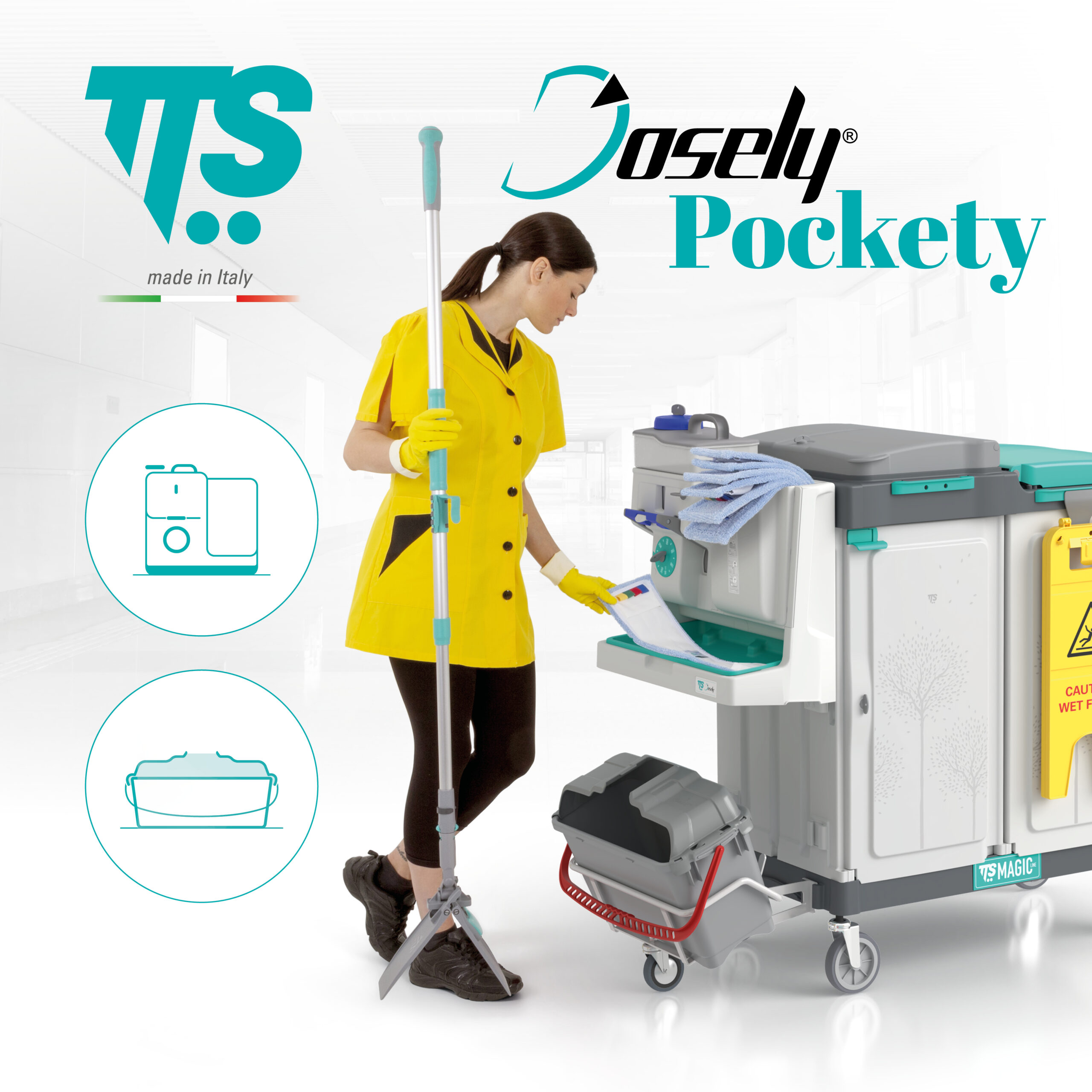 Attrezzare i carrelli Magic con Dosely e Pockety permette di contrastare efficacemente la contaminazione crociata, favorendo la massima igiene lungo tutto il processo: dalla pulizia di ogni area con un ricambio pulito alla dismissione del ricambio sporco senza alcun contatto.